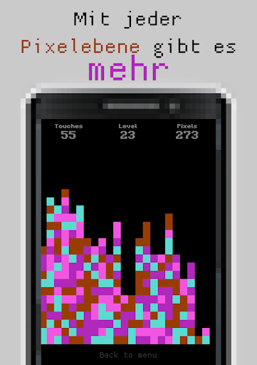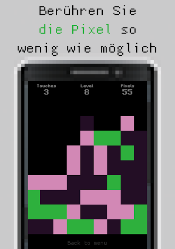 Sie müssen auf die Pixel klicken und sie verschwinden, aber nicht alles ist so einfach. Sie müssen die Ebenen durch Berühren des Bildschirms so wenig wie möglich passieren. Pluspixel werden mit jedem Level immer mehr.