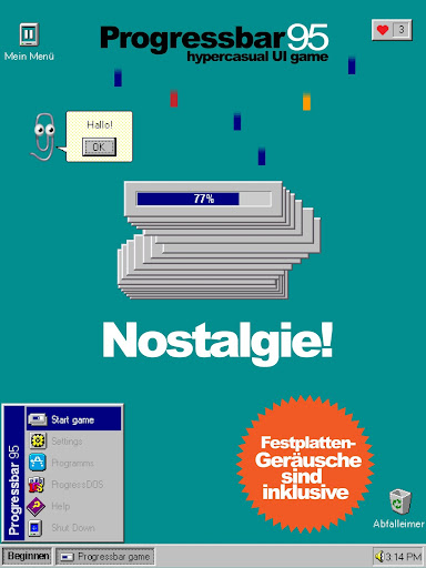Progressbar95 ist ein einzigartiges Nostalgie-Spiel. Lächeln vorprogrammiert!