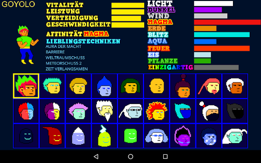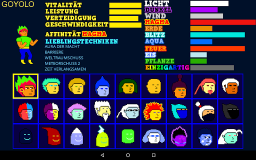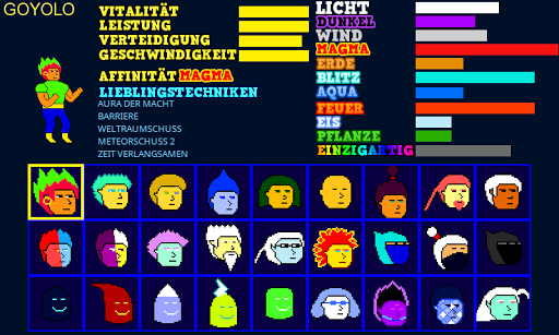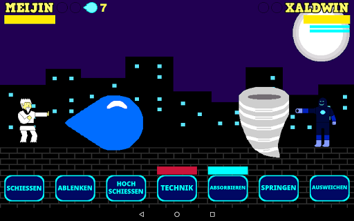 Projektil Kämpfer ist ein herausforderndes Arcade-Spiel, bei dem du aus einer großen Auswahl an einzigartigen Charakteren mit mehreren Fähigkeiten wählen kannst, um gegen eine Armada von Charakteren zu kämpfen. Projektil Kämpfer ist ein Kampfspiel, aber hauptsächlich werden Projektile verwendet, um das Ergebnis zu bestimmen. Projektilkämpfer können eine Vielzahl von Elementen für Projektile verwenden, wie Licht, Dunkelheit, Wind, Magma, Erde, Blitz, Wasser, Feuer, Eis, Pflanze und Einzigartig. Einzigartig ist jedes Projektil, das nicht unter die anderen Elemente fällt. Alle Elemente mit Ausnahme von Einzigartig haben eine Schwäche (ein Element, gegenüber dem sie schwach sind) und einen Konter (ein Element, das sie kontern). Alle Charaktere haben eine Affinität, die ihr stärkstes Element bestimmt, Elemente, gegen die sie resistent sind, und Elemente, die sie absorbieren können. Projektilkämpfer können Angriffstechniken anwenden, indem sie Projektile in verschiedene Richtungen werfen (horizontal oder diagonal nach oben im Stehen und diagonal nach unten im Springen), und sie können sich durch Ablenkung, Ausweichen, Springen und/oder Absorbieren von Projektilen verteidigen. Projektilkämpfer können außerdem Spezialtechniken nutzen. Alle Charaktere sind in der Lage, jede Technik zu benutzen. Lies den Leitfaden/Handbuch im Spiel, um mehr Informationen über die Mechanik, Techniken und Terminologie des Spiels zu erfahren. Projektil Kämpfer beinhaltet Musik und einen Soundtrack mit 7 Titeln. Zu den verschiedenen Arten von Projektilen gehören Lichtenergie, Dunkelwirbel, Tornado (Wind), Magmakugel, Meteor (Erde), Blitzschlag, Aquaball, Feuerball, Eisdorn, Blatt (Pflanze), Holz (Pflanze), Ki-Energie, Diamant, Energiestrahl, Augenstrahl, Stoßwelle, Shuriken, Dämmerungsenergie, Dämmerungswirbel und Stern. Verschiedene Klassen/Typen von Charakteren sind Normal, Android, Magier, Schwertkämpfer, Ninja, Hybrid, Außerirdischer und Gottheit. Die verschiedenen Stufen... Lichtstufe - ein paradiesischer Himmel, Wolken und eine helle Sonne. Dunkle Stufe - eine Stadt bei Nacht mit Wolkenkratzern und Voll- oder Halbmond. Windstufe - eine Wiese und ein riesiger Tornado. Magmastufe - ein Vulkan voller Lava, der ständig ausbricht. Erdstufe - ein felsiges Gebiet mit großen Bergen. Blitzstufe - Regen und Blitze. Aquastufe - ein Wasserfall. Feuerstufe - blaue Flammen. Eisstufe - Schnee, eisiger Boden, Berg- und Kiefernwälder. Pflanzenstufe - ein grüner Wald voller Gras und Bäume. Einzigartige Stufe - Weltraum, Regenbogenboden, Himmelskörper, Planeten, ein Schwarzes Loch, ein Mond, eine Sonne und viele Sterne. Projektil Kämpfer ist ein sehr schwieriges Spiel, das gute Reflexe, Reaktionen, Geduld und Konzentration erfordert, um erfolgreich zu sein.
