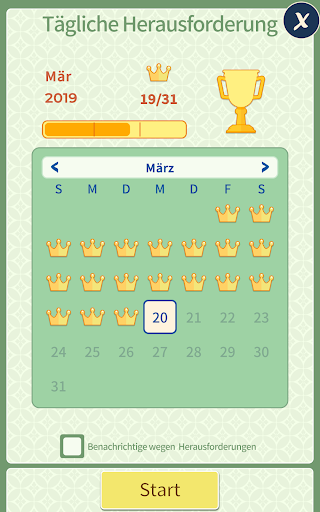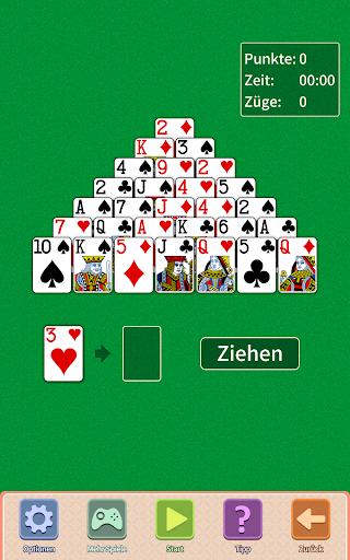 Sie sind ein Fan von Solitaire-Spielen und auf der Suche nach einem neuen Handy-Spiel? Dann sehen Sie sich Pyramid einmal an! Jetzt kostenlos herunterladen! Sie lösen gerne Logikrätsel und spielen Patience? Dann werden Sie überrascht sein, wie herausfordernd und spannend Pyramid ist - und wie viel besser und süchtigmachender als das Basis-Solitär. Pyramid ist ein Puzzle-Kartenspiel, bei dem es auf Strategie und Logik ankommt, um das Deck abzuräumen. Finden Sie Kartenpaare, die zusammen 13 ergeben, unabhängig von der Kartenfarbe. Könige zählen 13 und werden alleine abgelegt, Damen zählen 12, Buben 11, usw. Nur nicht abgedeckte Karten können freigespielt werden. Sie haben gewonnen, wenn Sie alle Karten der Pyramide abgelegt haben! Vielleicht möchten Sie auch einfachere Varianten wie Sieben Solitaire oder Gizeh Solitaire lösen. Schließe Herausforderungen ab, gewinne goldene Kronen und erhalte jeden Monat eine einzigartige Trophäe.