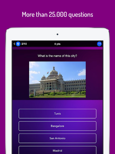 Beantworten Sie 10 allgemeine Wissensfragen so schnell wie möglich, um in jeder Runde so viele Punkte wie möglich zu gewinnen.Zeigen Sie, was Sie haben!Spielen Sie mehr, lernen Sie mehr und regieren Sie die Welt, indem Sie die Spitze der Rangliste erreichen!