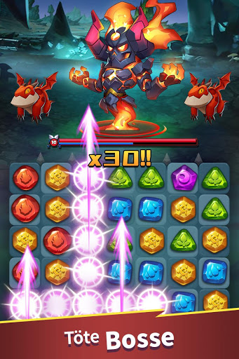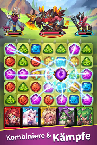 Klassische Match 3 Kämpfe, die ein gutes Auge und Sinn für Strategie erfordern! Nutze Heldenfähigkeiten und elementare Stärken und Schwächen zu deinem Vorteil!