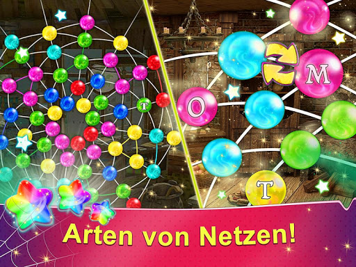 Die Fantasiewelt Rainbow Kingdom wartet auf dich! Der teuflische Hexenmeister Spinne hat im Regenbogenreich die Macht erobert und die gesamte Stadt der Regenbogenmeister in ein schwarzes Spinnennetz verstrickt. Kann das einen wahren Helden aufhalten? Übrigens, du brauchst dein Schwert nicht zu ziehen. Du musst mit dem Kopf arbeiten und ungewöhnliche Rätsel des Genres "Drei in einer Reihe" lösen. Der wichtigste Unterschied zu anderen Spielen dieser Art ist die originelle "Netzgeometrie" des Spielfelds, die ein besonderes Herangehen verlangt und jeden Spieler mitreißt.
