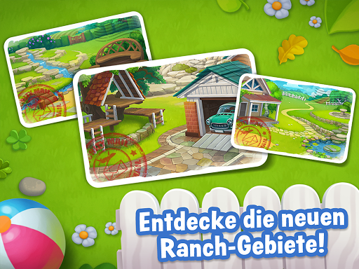- Absolviere Level, um dir Münzen zu verdienen, mit denen du deine Ranch aufwerten kannst;