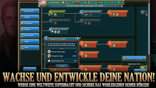 - Formen Sie das politische System Ihres Landes nach Ihren Wünschen um und bestimmen Sie über die Beziehungen zu anderen Nationen.
