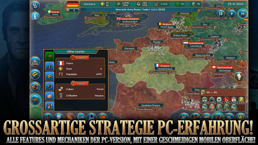 - Führen Sie in verschiedenen Szenarien jedes beliebige Land der Welt zur globalen Dominanz.