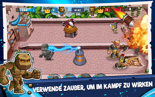 • Zerstöre gegnerische Burgen in einer neuen Arena und schalte neue Karten frei