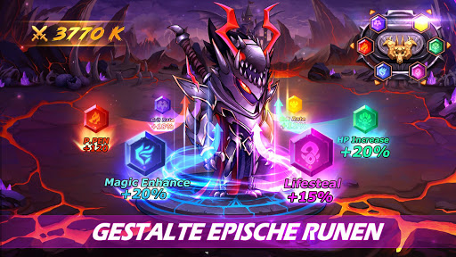 Verbessere Helden, Fähigkeiten und Runen, um deine Gruppe zu stärken und immer mächtigeren Bedrohungen zu begegnen.