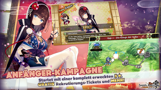 Erlebe eine atemberaubende Geschichte im Japan der Sengoku-Ära! Stürz dich mit Sakihime und ihren Vasallinnen ins Abenteuer, und triff dabei berühmte historische Figuren wie Oda Nobunaga, Tokugawa Ieyasu und viele andere.