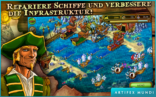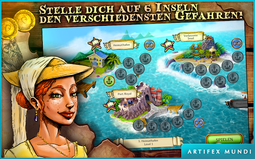 Bring im packenden Time Management-Spiel Segel gesetzt: Karibik dein Familienunternehmen wieder auf die Beine und besiege den Piratenkönig, um deinen Vater zu retten.