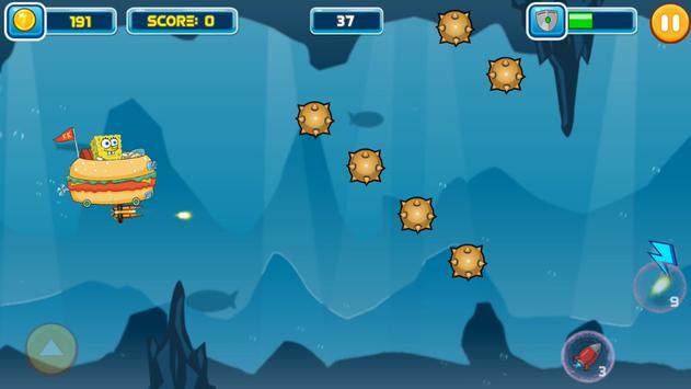 Spongebob journey to new cave. The cave contain wild shark, bomb, and mine. Shark vs Spongebob Squarepant is simple game platformer. To playing this game you just make boat can flying in the middle cave. Avoid all obstable or you can you missile to destroy them. Put the shield, this can make boat can not destroy.