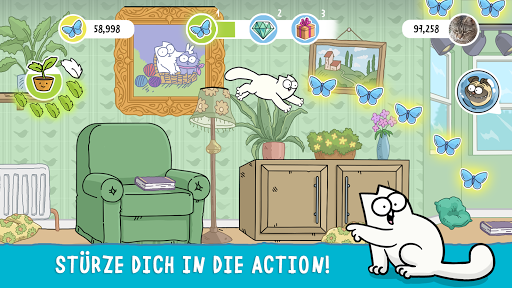 Simons Katze träumt von einem Date mit seiner großen Liebe Chloe, aber er braucht Schmetterlinge, um sie zu beeindrucken. Begib dich auf ein Abenteuer und erkunde dieses Endless-Runner-Spiel, in dem Simons Katze & Co. Schmetterlinge jagen!