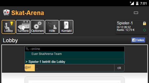 Mit der Skat-Arena-App kannst Du online gegen andere Spieler Skat spielen.