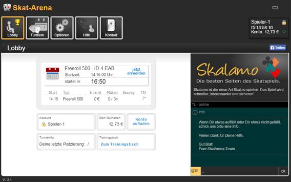 Teste bei unseren Freerolls das neue Turniersystem Skalamo. Im Skalamo wurden die Vorteile der unterschiedlichen Skatturniere vereint und mit neuen dynamischen Elementen ergänzt.