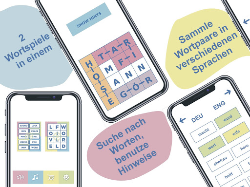 Beliebige Sprachkombination. Wie viele Rätsel gibt es? Versuchen Sie nicht einmal zu zählen. Mehr als nur eine Übersetzung. Einzelne Sprache ist möglich. Einzelne Sprache im Wort-zu-Wort-Spiel - Wortzusammenhänge. Einzelne Sprache in Wörtern im Rasterspiel - dieselben Wörter. Verschiedene Sprachen - Übersetzung oder enge Verbindung. Drei Schwierigkeitsgrade. Schwierigkeit der Form und Schwierigkeit des Inhalts.