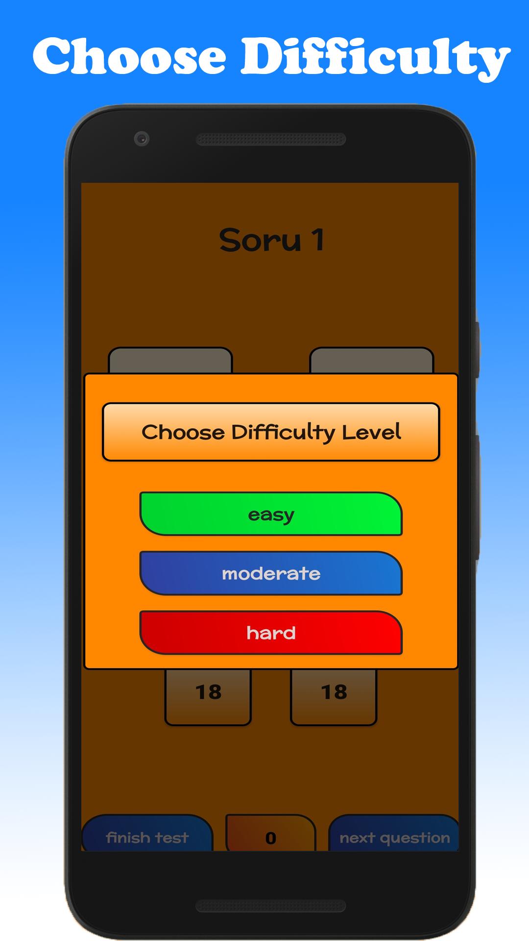 - Time Challenge: Solve math questions over time. You are going to have less time for every question you have solved.
