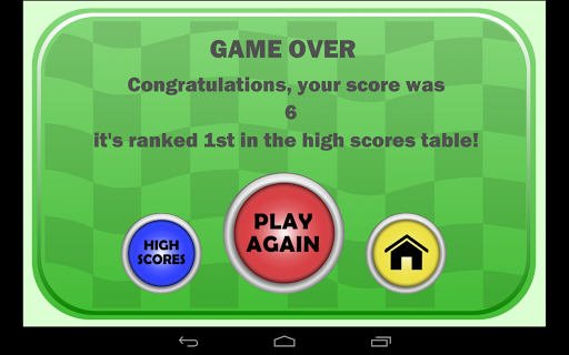 Schnelligkeit und Reaktion Tester ist eine einfache Ermittlung der Geschwindigkeit Spiel. Ihr Ziel ist es, die blinkenden Tasten in der gleichen Reihenfolge drücken, wie sie aufleuchten. Seien Sie vorsichtig, wenn Sie die falsche Taste das Spiel ist vorbei drücken!