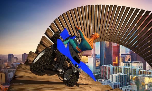 Realistic Sound Effects of spider hero crazy stunts as bike racer.