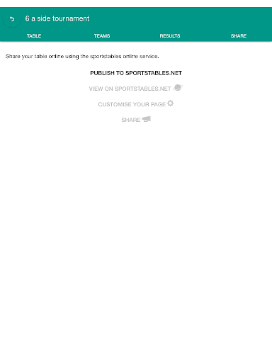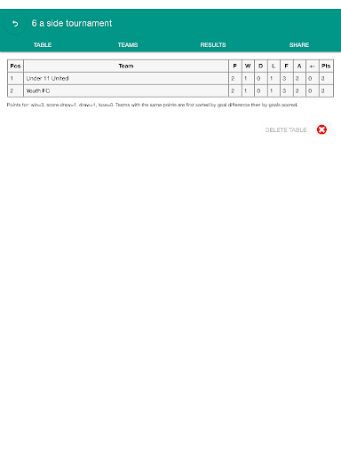 Sie geben die Teams und die Ergebnisse SportsTables erzeugt die Liga-Tabelle für Sie. Sie können dann veröffentlichen die Liga-Tabelle auf sportstables.net und mit der Welt teilen.