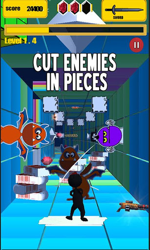 Verwende das Schwert, um die Monster und all die Papier Hindernisse, die sein Weg versperren zu zerschneiden. Sammle