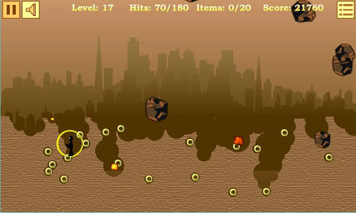 Helfen Sie dem Stickman, zu überleben. Fallenende Meteoriten vermeiden. Verwenden Sie eine Schilde, um stärker zu werden.