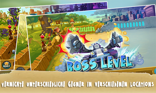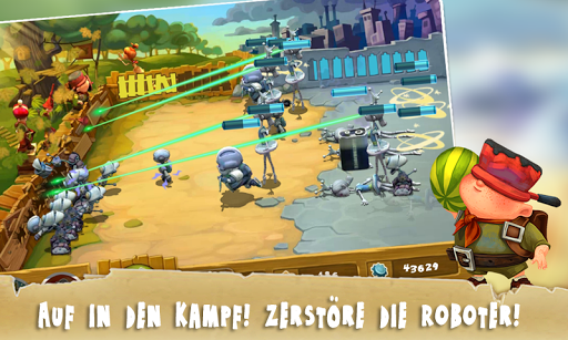 Rekrutiere die tapferen Waldbewohner, um die Roboter zu den Ruinen der Stadt, in der sich ihre Fabrik befindet, zurückzutreiben.