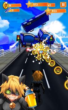 Try to get to the end of the road, dash over obstacles and the same time collecting and get coins. Help cat noir to jump like ninja from one building to another and collect coins.