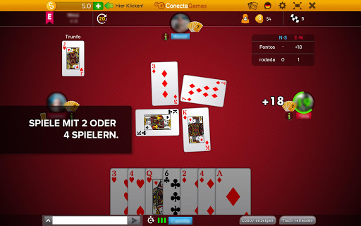 Spielen Sie Sueca lässig online auf Ihrem Handy oder Tablet mit Freunden und Familie. Sueca ist ein Kartenspiel ohne Bots! Mit echten Menschen zu spielen ist viel spannender!