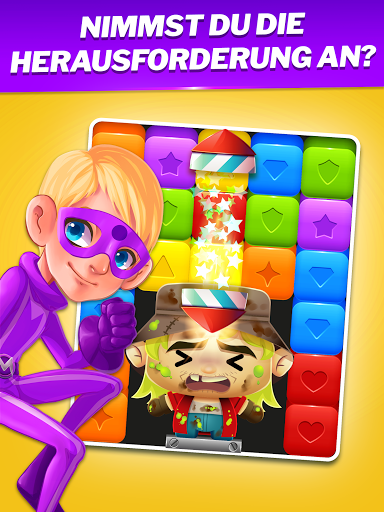 Die Helden kämpfen gegen Bösewichte, die mit dem Spielbrett interagieren, was die Level zu einer Herausforderung macht. Überlegen Sie sich Ihre Strategie und machen Sie sich bereit, Ihre Match-3-Fähigkeiten zu testen. Besiege alle Gesetzesbrecher und mache eine bessere Welt.