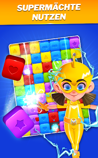 Jedes Familienmitglied hat eine einzigartige Kraft, die Ihr Spielerlebnis verbessert. Sprengen Sie die Helden-Farbblöcke, um seine Kraft zu laden. Aktivieren Sie es, um die Levelziele zu erreichen.