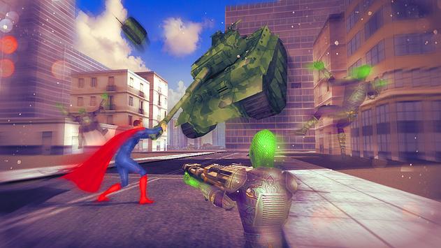 Superhero is not afraid of invaders from another planet. He rescues people from extraterrestrials and amuses himself by shooting from the bazooka. Armies, detachments and legions of evil lizards want to make revenge and their punishment will be terrible. But the hero has a rope and he pull objects via it. Enemies can fly in the sky over the city, but our hero also knows how to fly. Space ships land troops in different parts of the vicious criminal city. "Die or fight!" Say monsters bosses from another galaxy. A real superhero uses an energy strike that creates a flow similar to magic and destroys the plans of evil enemies.