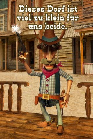 * Der verrückte Cowboy fordert dich zu einem Duell heraus.