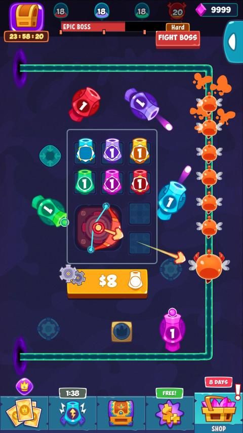 Enemies from the world of color have arrived! Build your defenses against them. Just Tap, Build and merge the towers together!