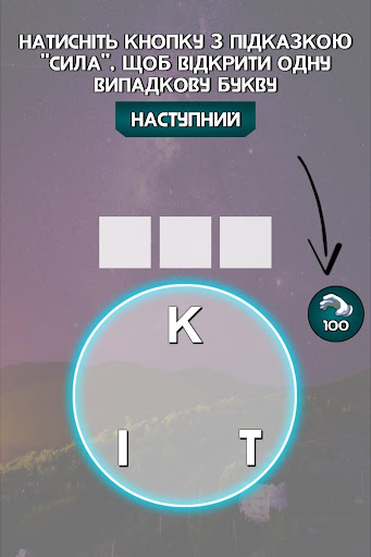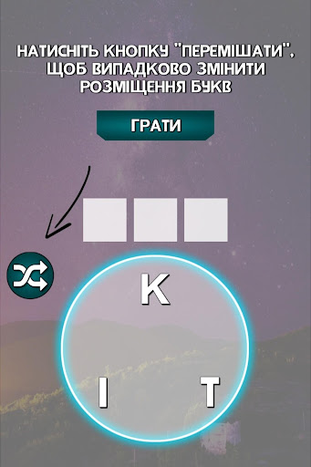 У процесі гри Ви навчитесь швидко складати слова з букв українською мовою, та ощадливо користуватись підказками, так як за кожну з них Вам доведеться потратити очки сили, які здобуваються після кожного пройденого рівня.