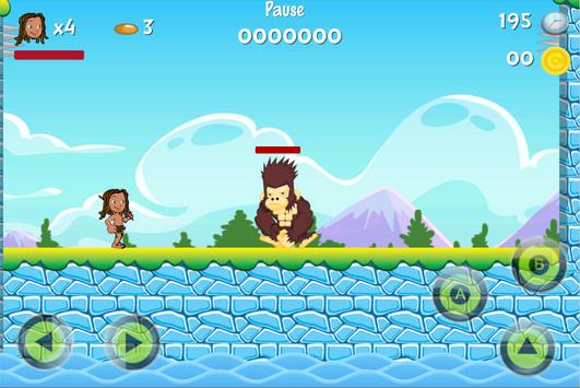 In each world, to reach the final combat, Tarzan will face many obstacles: snails, turtles, birds, bats, spiders, hedgehogs, fire imps and other small animals. The only defensive weapons Tarzan has against these animals is a stick and peach stones collected during the adventures.