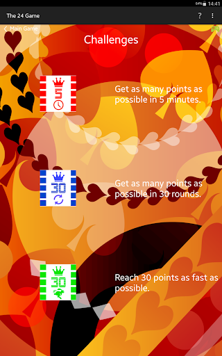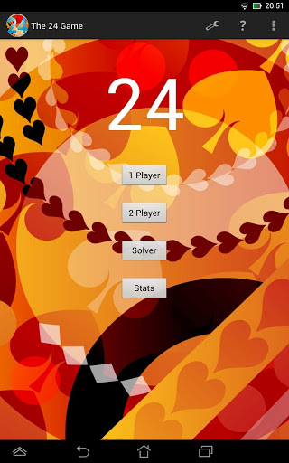 Das 24-Spiel ist ein Fun-Kartenspiel, das Gehirn aktiviert, anspruchsvoll und lohnt sich, um zu spielen. Das Spielen des 24-Spiels erhöht Ihre Intelligenz und verbessert Sie mathematische Fähigkeiten. Es kann helfen, die mathematischen Fähigkeiten des Schulkinds zu verbessern und das Risiko von Krankheiten wie Alzheimer für Senior zu reduzieren. Es schult unsere mentale Arithmetik, die für jeden in allen Altersklassen hilfreich ist. Jede Person mit grundlegendem mathematischen Wissen kann spielen, Nutzen und im Laufe der Zeit werden 24 Experte. Wie spielen Sie ##### Wie Sie spielen #####