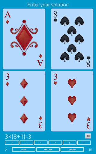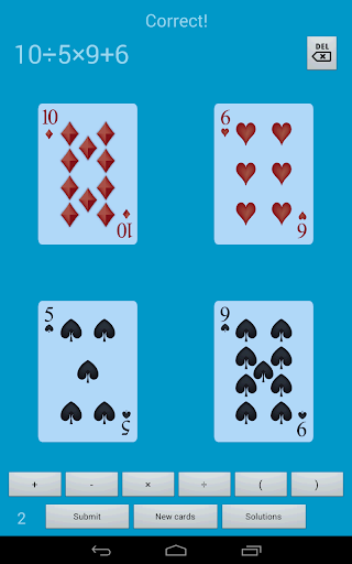 Sie erhalten vier Karten, die vier Zahlen zwischen 1 darstellen -10. Verwenden von grundlegenden mathematischen Operationen, Addition ( ), Subtraktion (-), Multiplikation (×), Division () und Klammern (()), müssen Sie die Zahlen manipulieren und genau 24 erreichen.