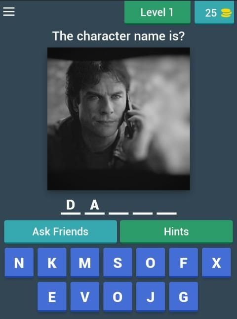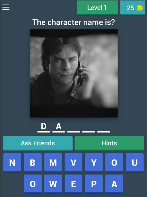 The Vampire Diaries Quiz (Fan Made) Each level contains the most popular TV show characters, if you are a fan of a series you can definitely identify all the characters very easily This "The Vampire Diaries Quiz" is an unofficial trivia game, not associated with TV series or book series. Let's play the game and have a nice time.