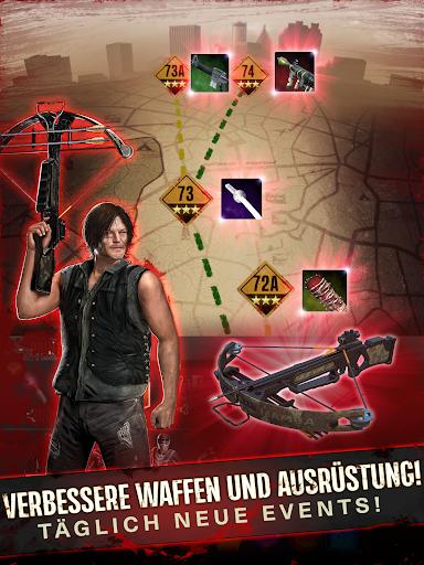 SAMMELE Hunderte von mächtigen Waffen, von Daryls Armbrust bis hin zu Michonnes Katana, verbessere dann deine Ausrüstung, um deine Überlebenden noch stärker zu machen.