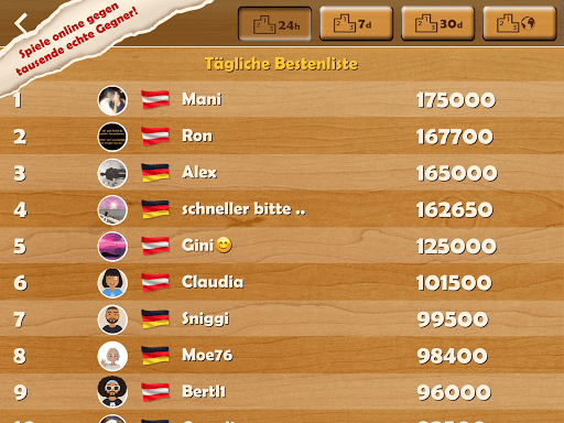 Messe dich in den täglichen, wöchentlichen und monatlichen Ranglisten. Zeige ALLEN wer der beste Spieler ist.