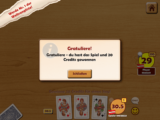 Neben 31, Schwimmen oder Hosn Obe ist das beliebte Gesellschaftsspiel im DACH Raum auch bekannt als Knack bzw. Knaxn oder Schnauz und auf der ganzen Welt als Thirty One, Blitz, Scat bzw. Skat oder Eenendertigen. Das gratis Online Mehrspieler Kartenspiel ist eines jener beliebten Kartenspiele, die schnell zu lernen und leicht zu spielen sind. Lerne es ähnlich schnell wie Skip Bo, Uno oder Phase 10 und meistere anspruchsvolle Taktiken wie beim Skat oder Schnapsen. Spiele mit Freunden kostenlos online!
