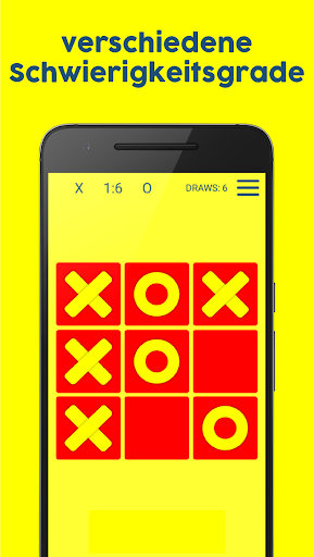 Mit dieser Anwendung können Sie jetzt das Spiel von drei in Zeile / Katze / drei online auf Ihrem Android-Handy genießen. Verwenden Sie Ihre Fähigkeiten und Kenntnisse, um die Maschine zu besiegen oder spielen Sie gegen Ihre Freunde im Zwei-Spieler-Modus. Darüber hinaus gibt es drei Schwierigkeitsstufen; Einfach, normal und schwierig, Trauer so lustig wie möglich zu machen. Es ist so einfach zu spielen, dass Sie nicht in der Lage sein zu widerstehen, die drei-in-a-row / oxo / nullen und kreuze zu widerstehen.