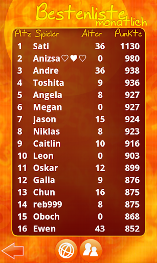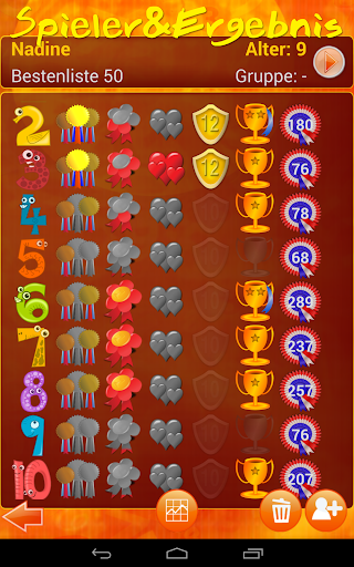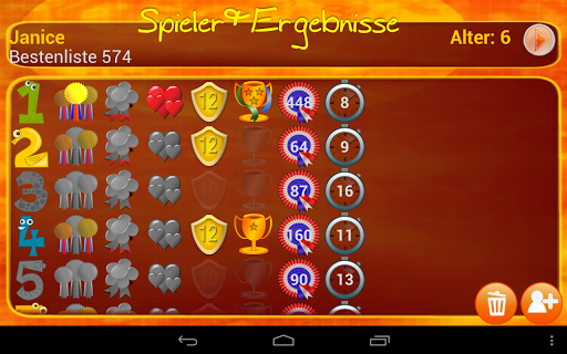 Der Score und die gespielten Reihen werden registriert im Menu “Spieler & Score“. Kinder finden es fantastisch ihre Leistungen und Fortschritte im Nachhinein sehen zu können.