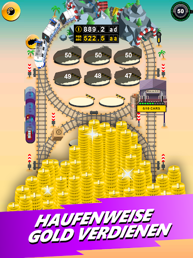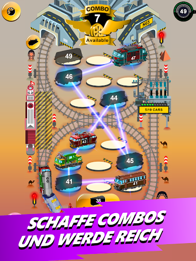 Train Merger hat eine ganz einfache Spielidee: kaufe deine Züge, setze sie zusammen und verwalte sie, damit du Gold verdienen kannst und mehr als 60 Zugmodelle freigeben kannst. Bau deine Gebäude aus, um mehr zu verdienen und die Ultimative Herausforderung zu bewältigen – den Gold-Express zu bauen!