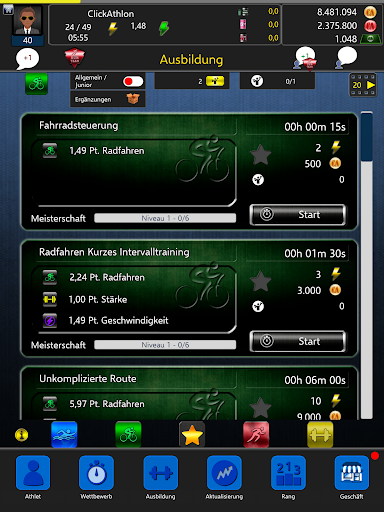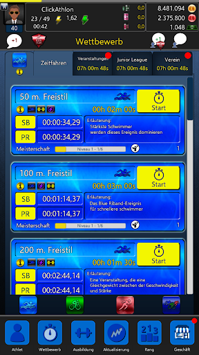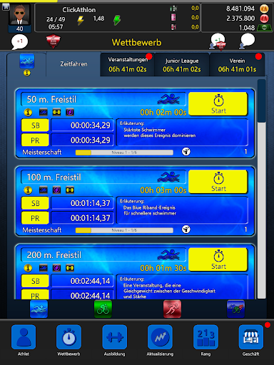 ClickAthlon Manager ist nicht nur ein Rennspiel, Sie können den kompletten Triathlon mit einem einzigen Klick üben
