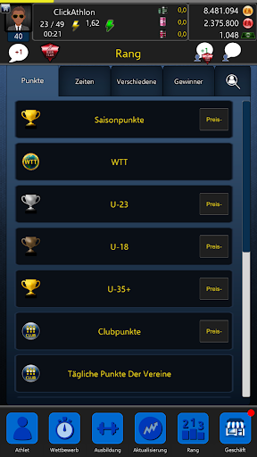 Mit ClickAthlon können Sie auch einen eigenen Verein gründen oder an einem bestehenden teilnehmen, bei dem Sie in jeder Saison Seite an Seite mit Ihren Teamkollegen kämpfen müssen, um der beste Verein zu sein. Dazu müssen Sie mit den anderen Mitgliedern Ihres Vereins zusammenarbeiten, Strategien planen und überlegen, wie Investieren Sie, um die Vorteile Ihres Clubs zu verbessern.