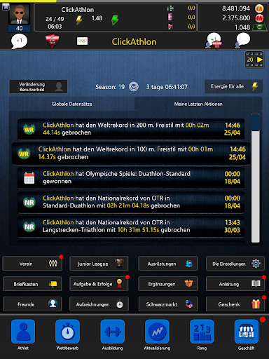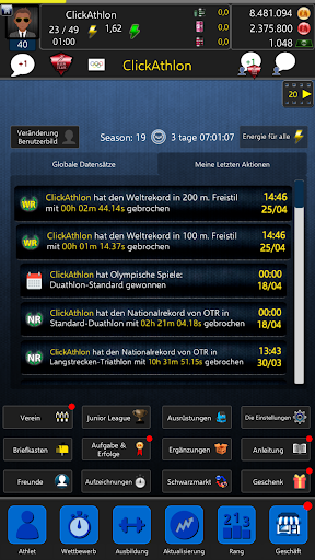 ClickAthlon ist nicht nur ein Spiel, sondern auch eine Community, die jeden Tag wächst und in der eine großartige Atmosphäre rund um Triathlon herrscht. Sie können sich in den verschiedenen Bereichen bekannt machen > Chats sowie Treffen mit Rivalen und tollen Freunden.