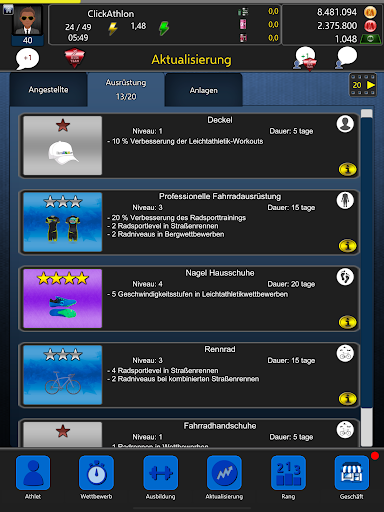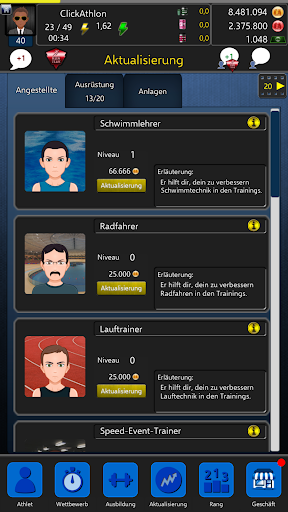 Verbessern Sie auch Ihre Trainer, Ihre Einrichtungen oder Ihre Ausrüstung, um Ihren Fortschritt zu beschleunigen.