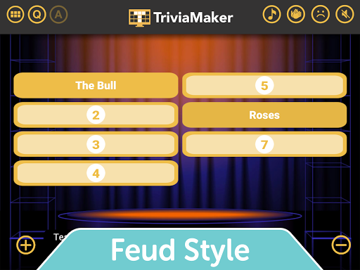 Trivia Maker ist ein aufregender "Erstellen Sie Ihr eigenes Quiz / Gameshow".App.Das Layout des Boards ähnelt dem Spiel gefährdet, Familienfehde, der Millionär oder andere Trivia -Spielshows sein will.
