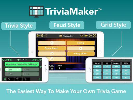 Trivia Maker ist der schnellste und einfachste Weg, um Trivia -Spiele zu machen, die leicht vor jedem Publikum gehostet werden können.